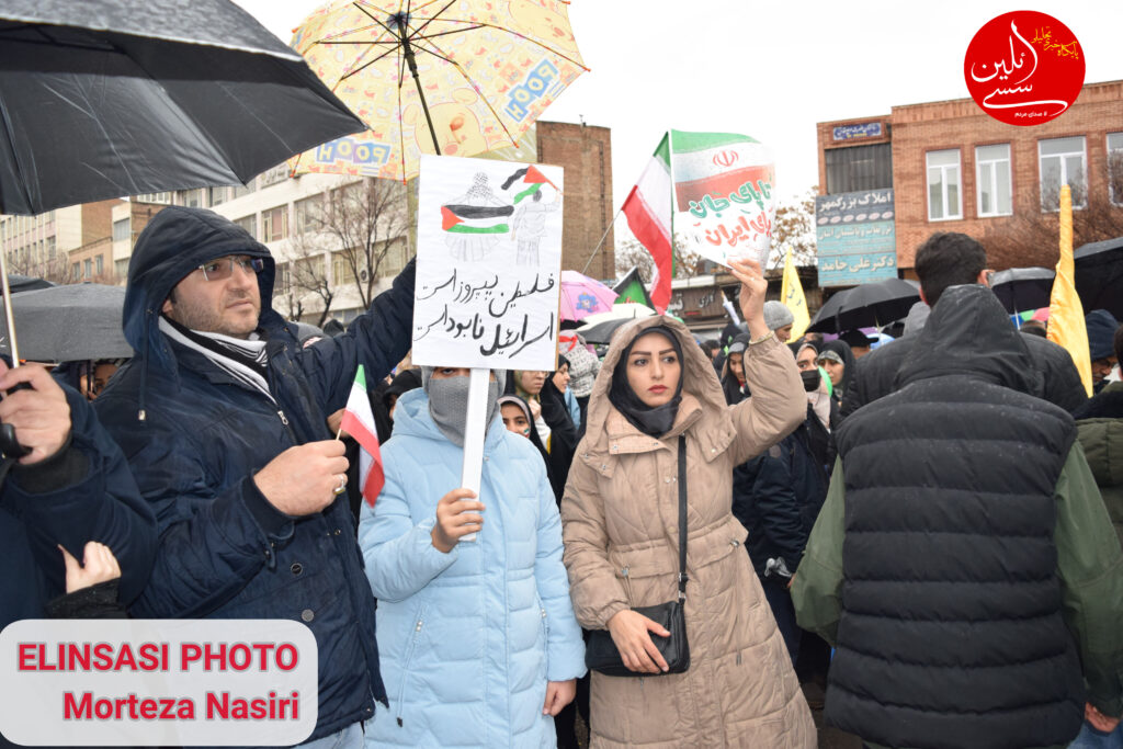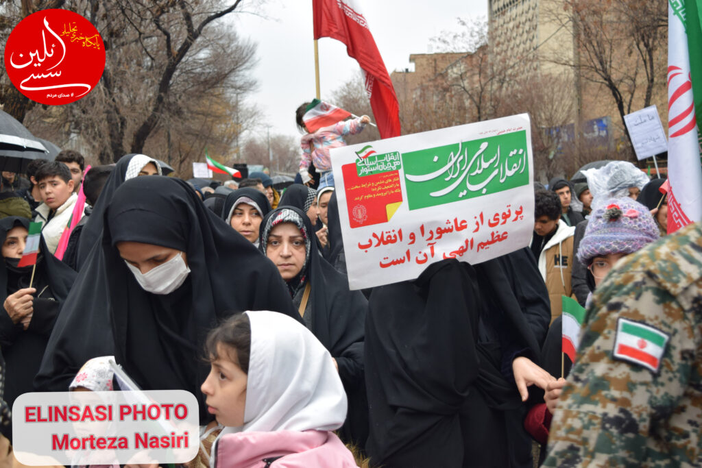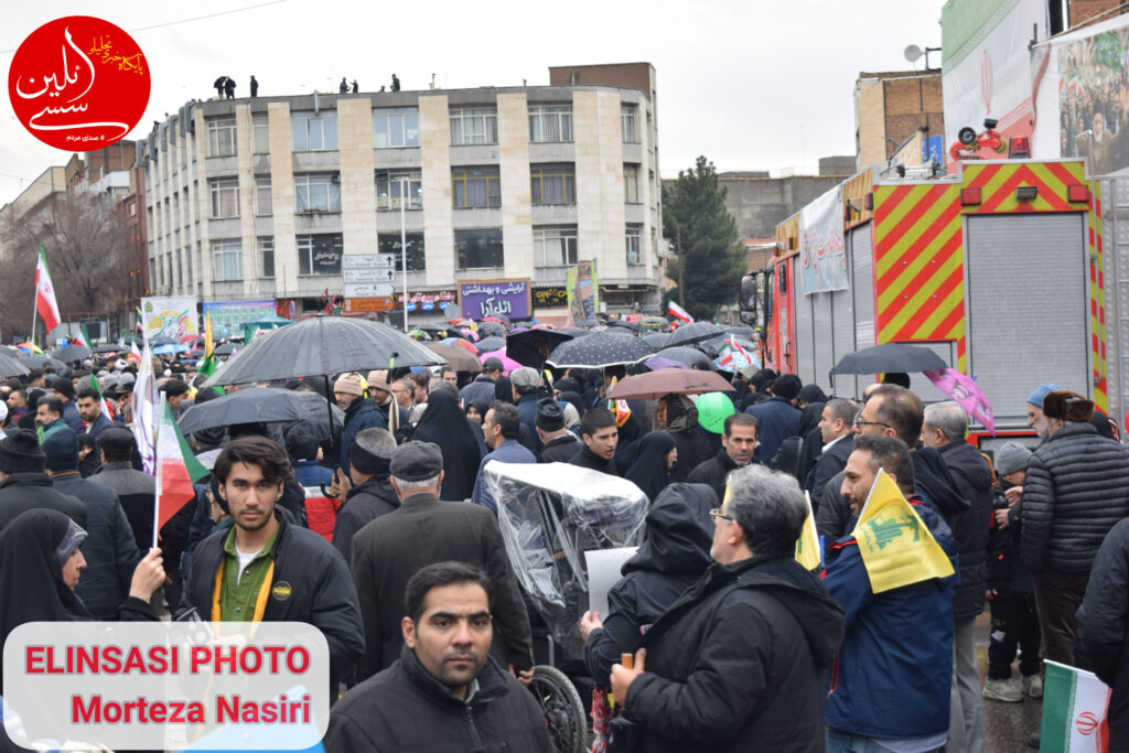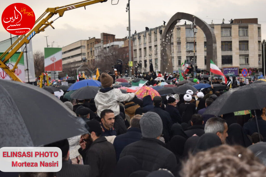 راهپیمایان تبریزی در چهلوهفتمین سالگرد پیروزی انقلاب اسلامی، با چترهایی خیس و دلهایی امیدوار به میدان آمدند تا نشان دهند ایستادگی در مسیر آرمانها، زمان و شرایط نمیشناسد.